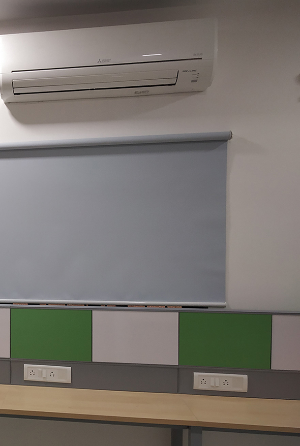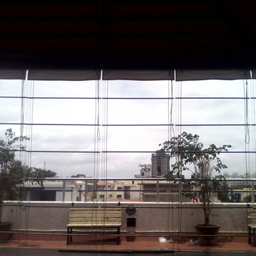A Venetian blind is a type of window covering. There are many different kinds of venetian blinds which use a variety of control systems. A typical window blind is made up of several long horizontal or vertical slats of various types of hard material, including wood, plastic or metal which are held together by cords that run through the blind slats. Venetian blinds can be maneuvered with either a manual or remote control by rotating them from an open position, with slats spaced out, to a closed position where slats overlap and block out most of the light. There are also several types of window coverings, called shades, that use a single piece of soft material instead of slats.